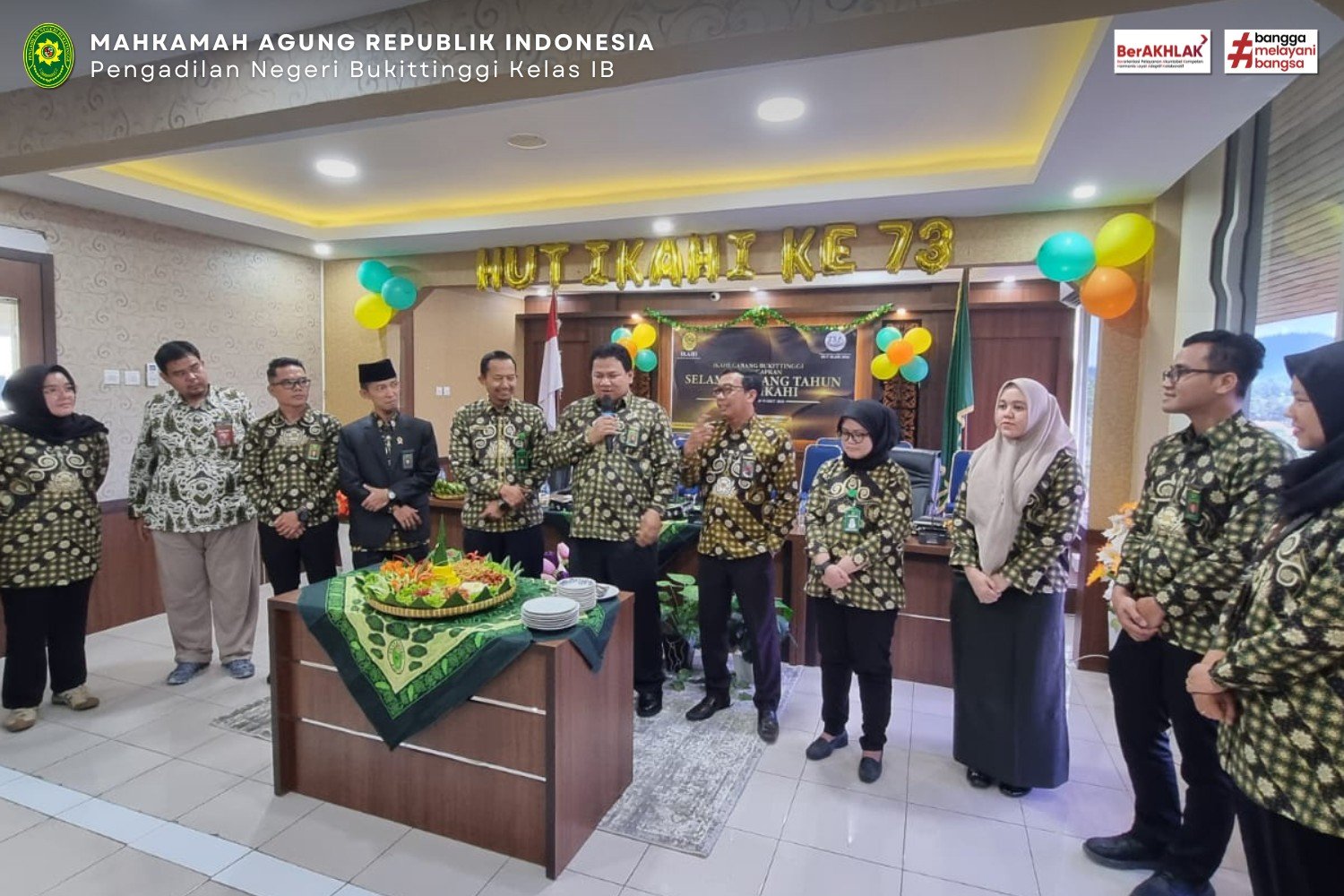 Kegiatan Puncak Peringatan HUT IKAHI ke-73 Rabu, 22 April 2026 – Keluarga besar IKAHI Cabang Bukittinggi menggelar acara puncak peringatan Hari Ulang Tahun Ikatan Hakim Indonesia (IKAHI) yang ke-73. Kegiatan yang penuh khidmat dan kebersamaan ini dilaksanakan di Ruang Media Center Pengadilan Agama Bukittinggi.