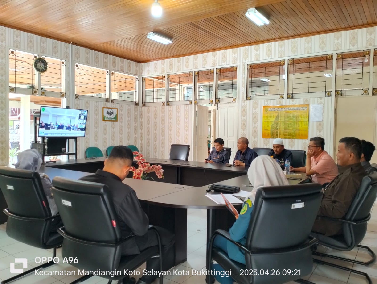 Ketua, Hakim, dan Pegawai Pengadilan Negeri Bukittinggi mengikuti secara virtual acara KPT Menyapa (Sidak Virtual KPT Padang terhadap Pengadilan Negeri sewilayah hukum Pengadilan Tinggi Padang)